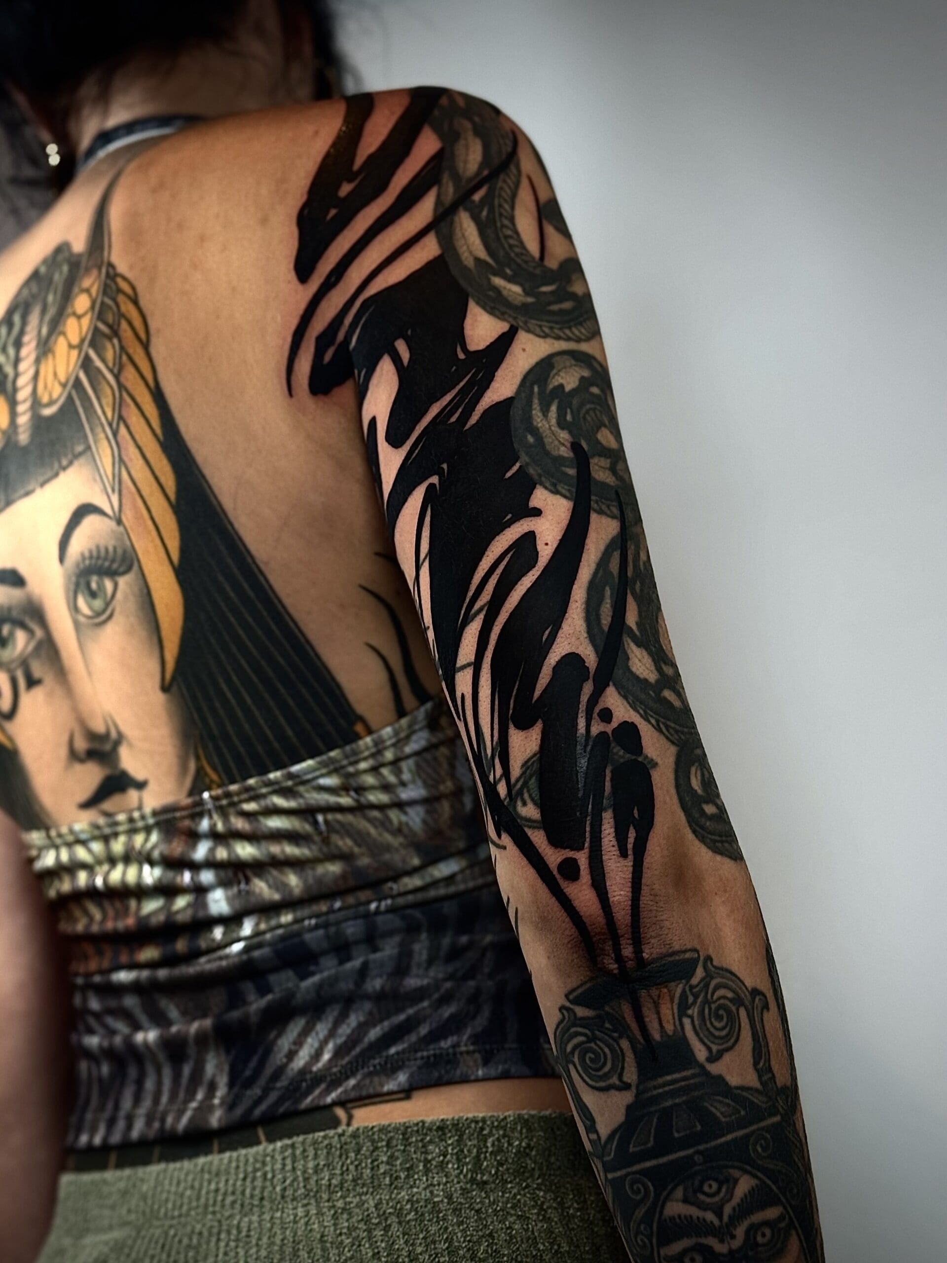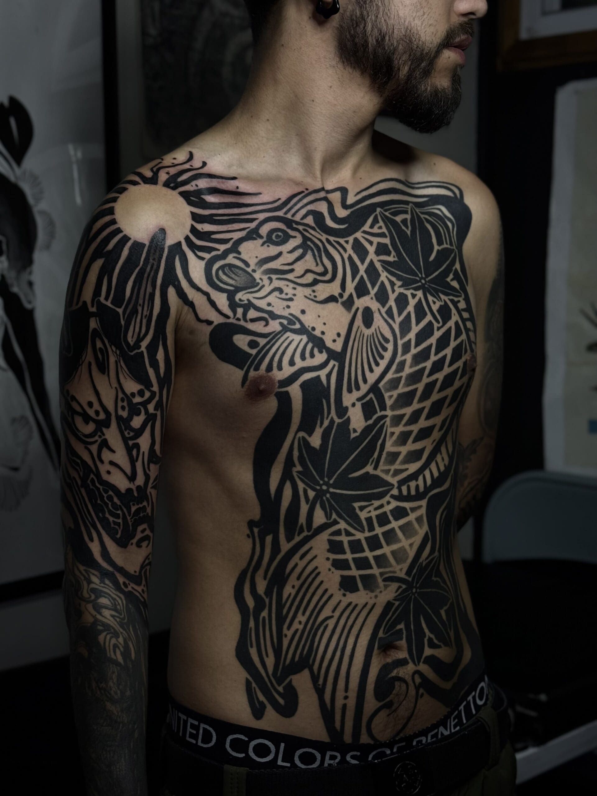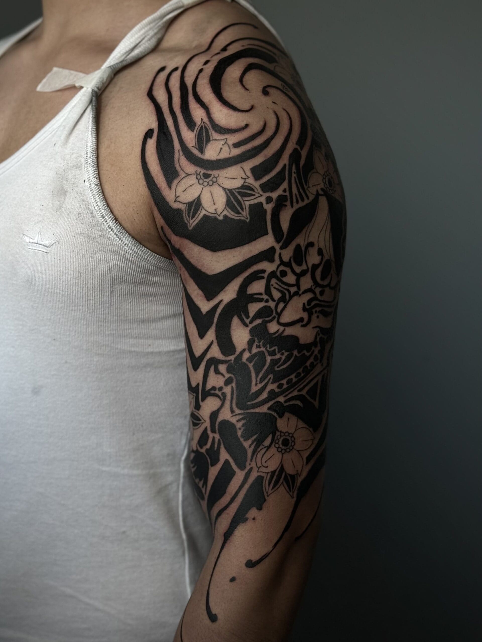 Hi, I’m Camilo. I’m a tattoo artist and visual artist from Chile. Drawing has been part of my life since childhood, but it wasn’t until 2019 that I discovered tattooing for myself. Since then, a whole new world has opened up: one where I can bring my passion for art directly onto the skin. What excites me most are large-scale projects, because they allow me to fully explore the body’s anatomy and natural flow. My focus is on powerful blackwork and Japanese-inspired designs. I also like to incorporate futuristic, sci-fi-influenced elements that I call “Voidcrafts,” giving my work its own distinctive touch. I look forward to creating your next masterpiece together with you.
