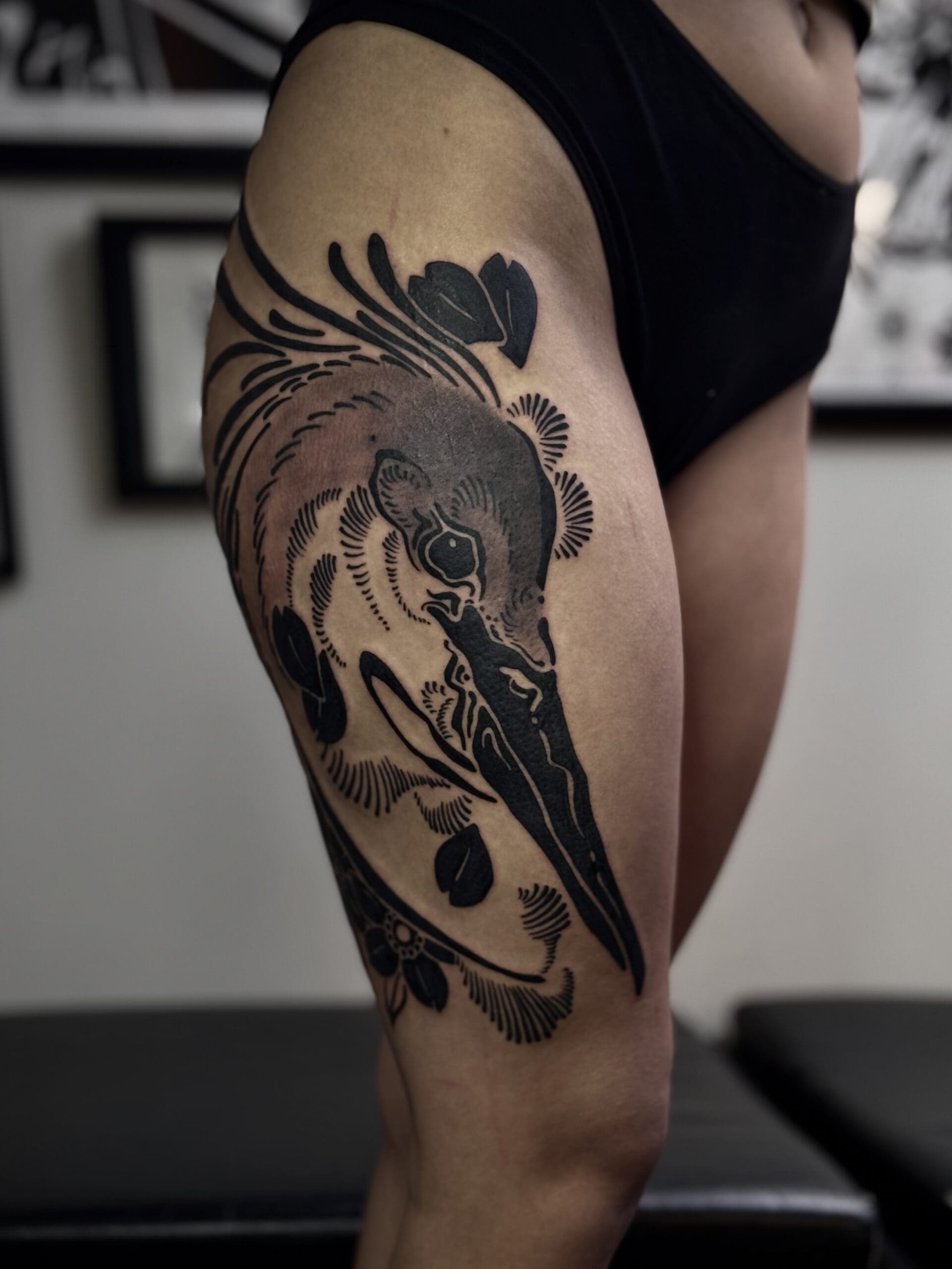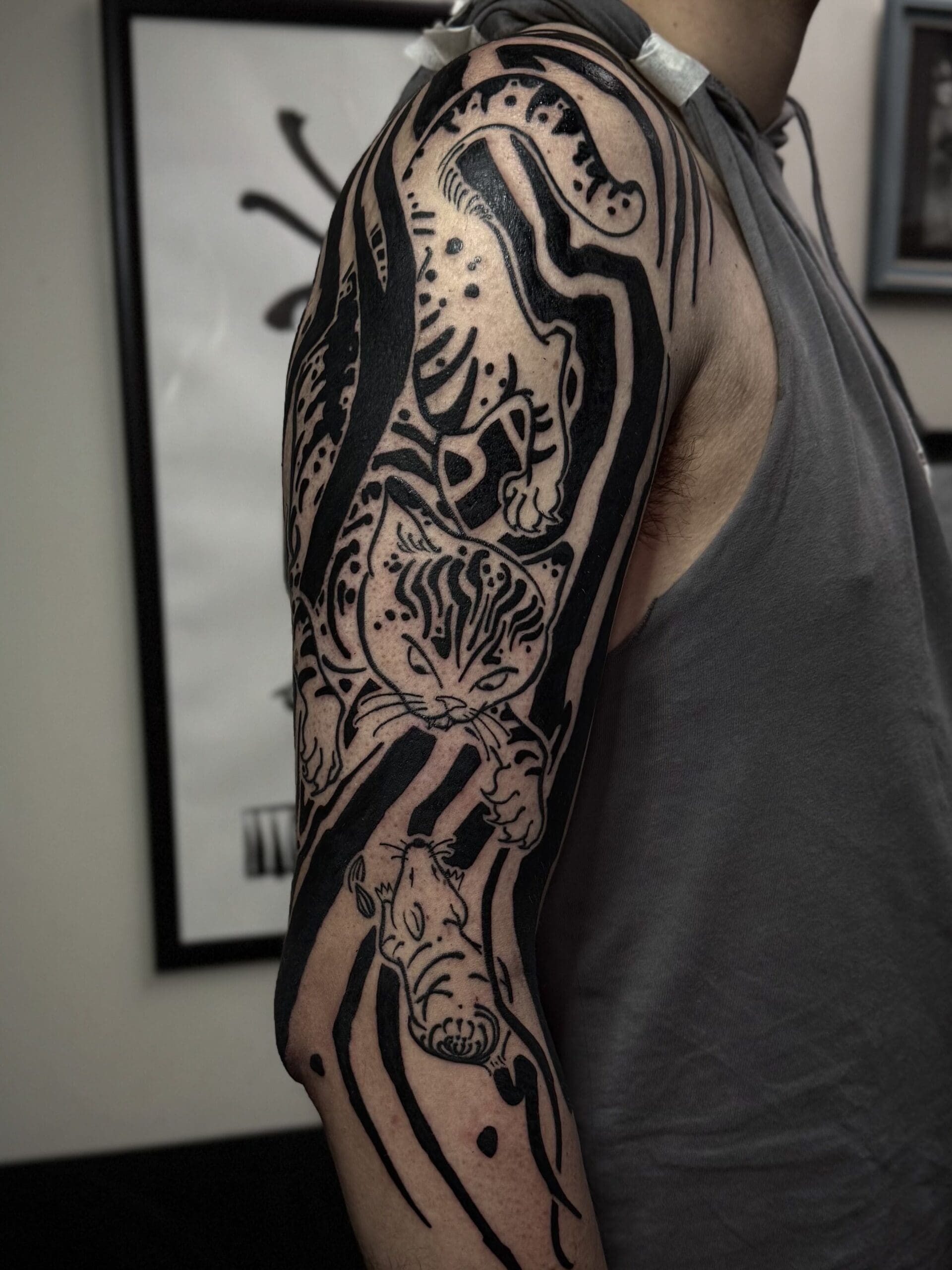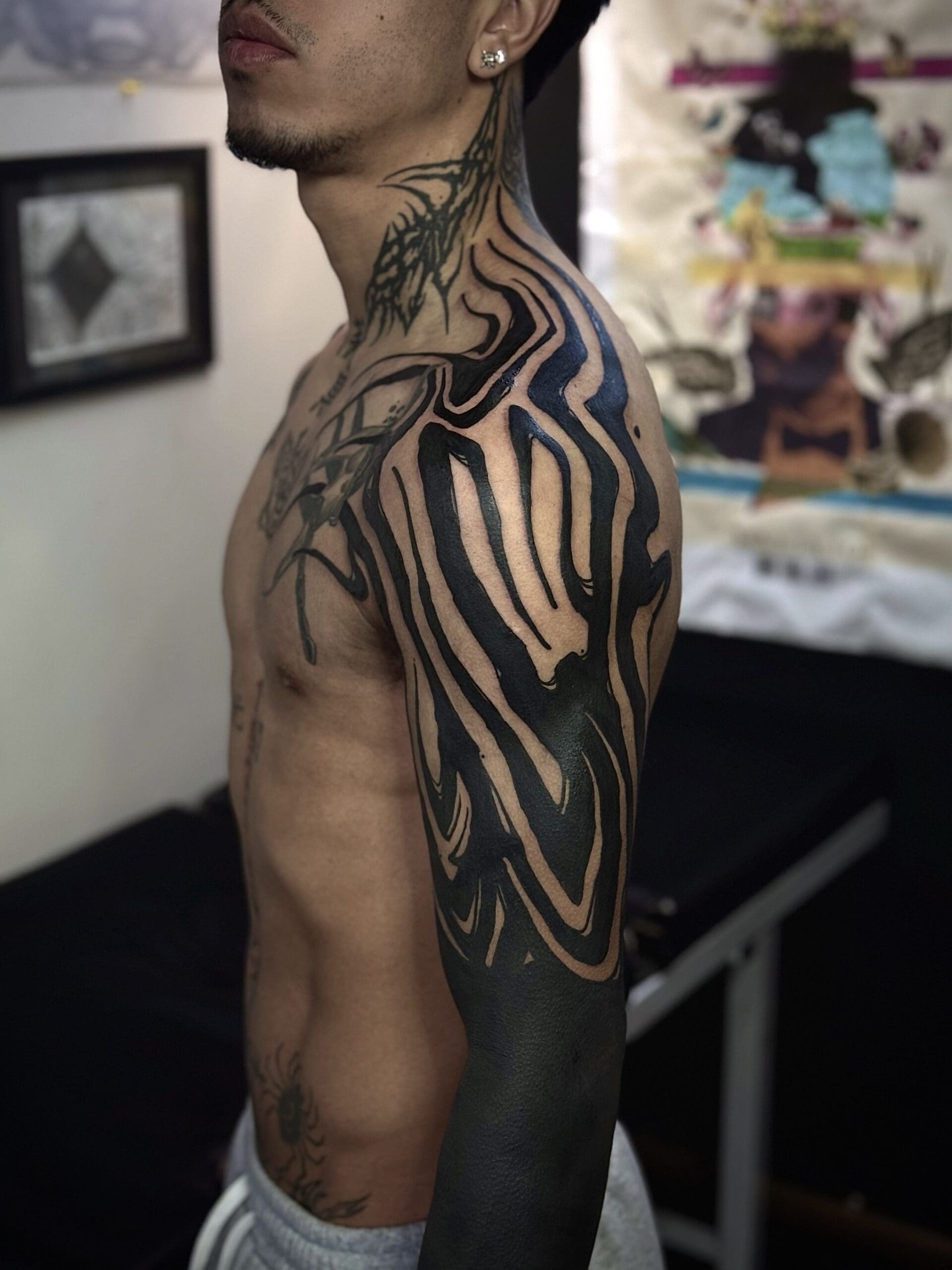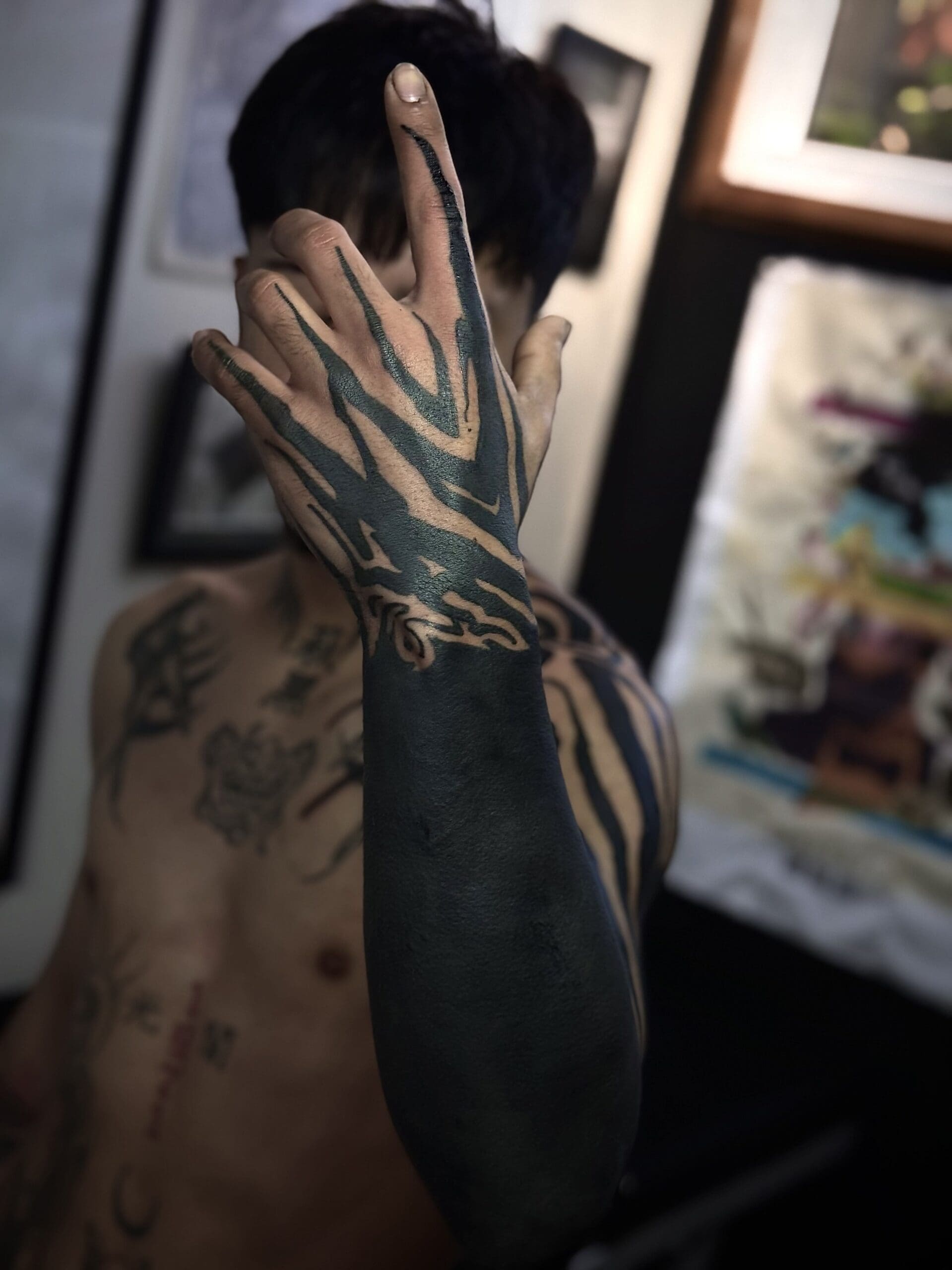 Hi, I’m Camilo. I’m a tattoo artist and visual artist from Chile. Drawing has been part of my life since childhood, but it wasn’t until 2019 that I discovered tattooing for myself. Since then, a whole new world has opened up: one where I can bring my passion for art directly onto the skin. What excites me most are large-scale projects, because they allow me to fully explore the body’s anatomy and natural flow. My focus is on powerful blackwork and Japanese-inspired designs. I also like to incorporate futuristic, sci-fi-influenced elements that I call “Voidcrafts,” giving my work its own distinctive touch. I look forward to creating your next masterpiece together with you.