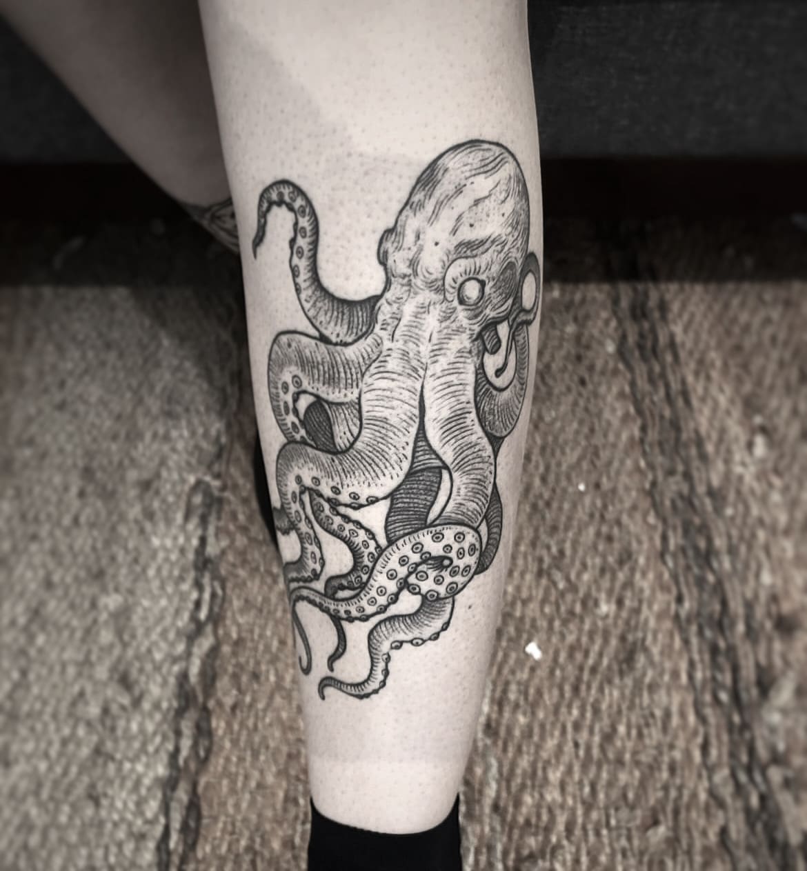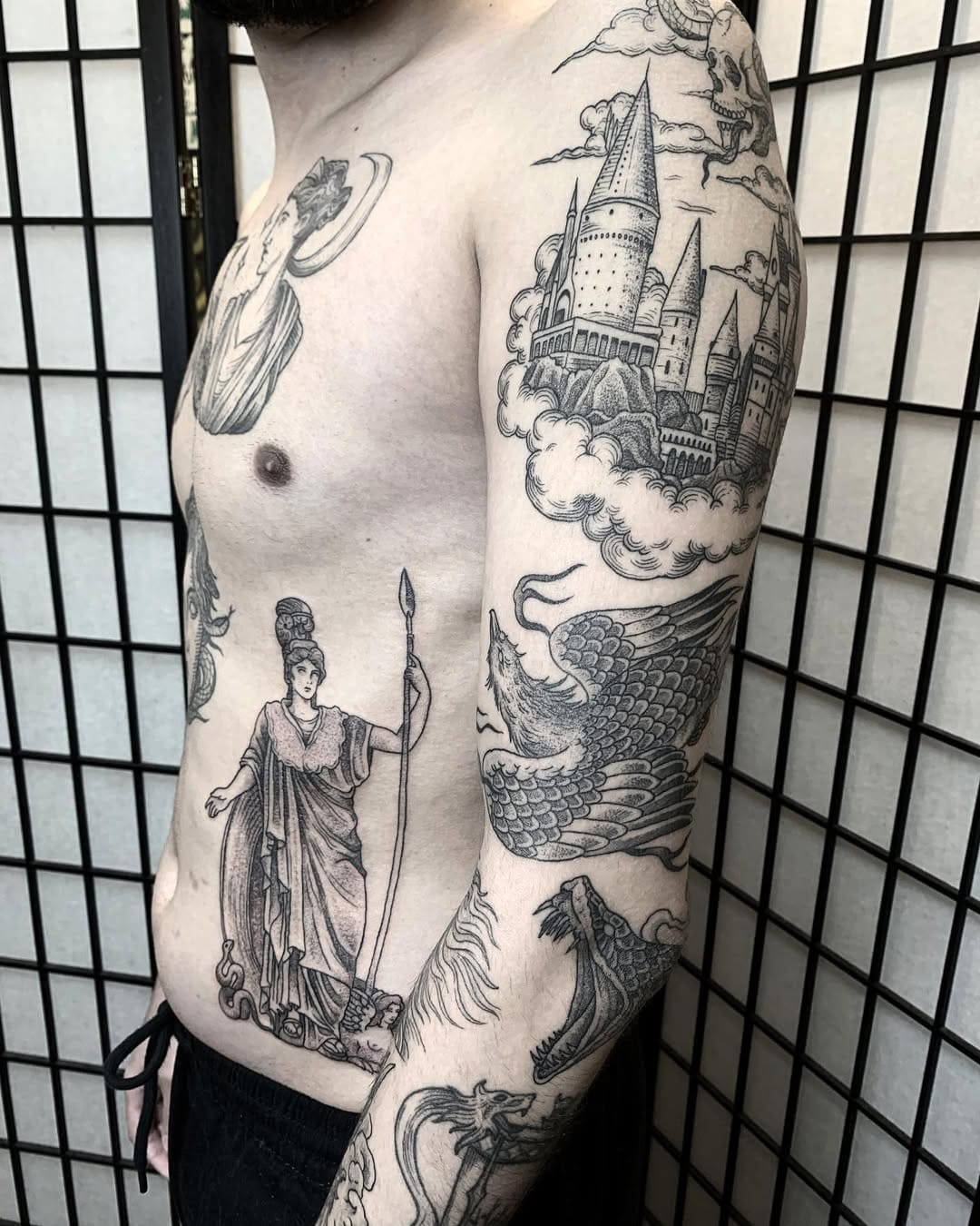 • Specializes in fine blackwork with a distinctive engraving-style approach