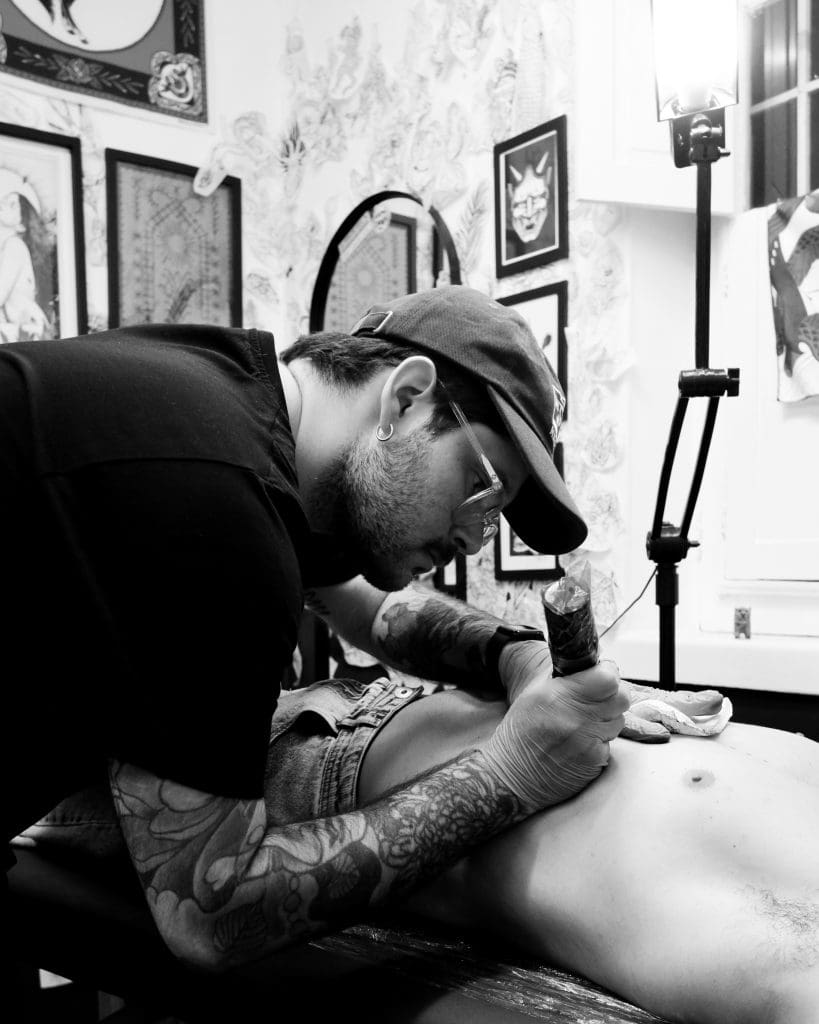 Hi everyone, I’m Matheus. With more than 14 years of experience and roots in Rio de Janeiro, I bring a bold and refined approach to tattooing. My work is deeply inspired by traditional styles, especially American and Japanese, and I’ve always had a strong connection to the classic look and feel of old school tattooing. Over the years, I’ve started carving out my own path, evolving my style to incorporate more engraving-inspired elements. I love exploring that fine balance between tradition and experimentation – staying grounded in the fundamentals while pushing the visuals in new directions. The result is fine blackwork that feels both timeless and distinct. I’d love to hear your ideas and collaborate on something meaningful.