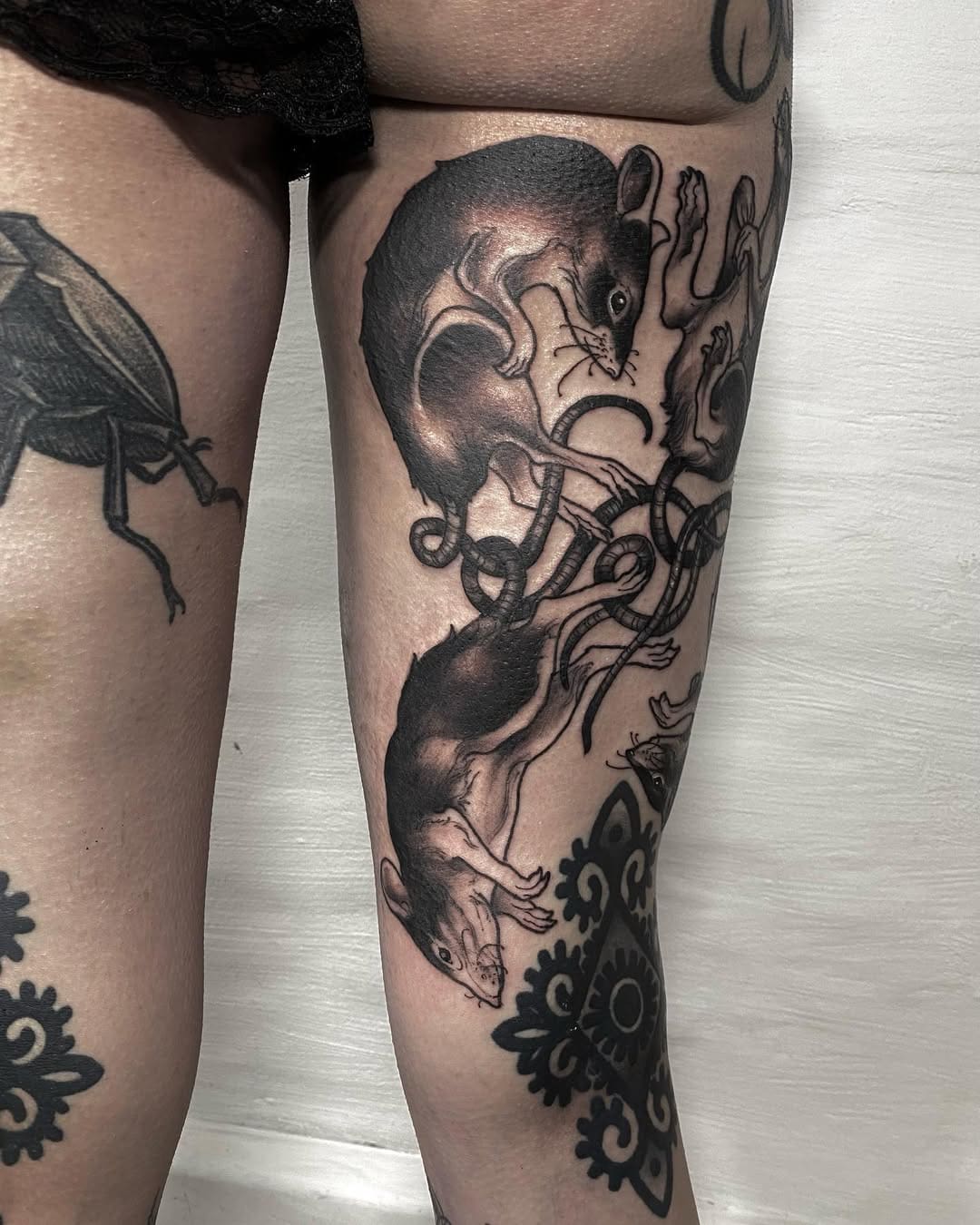Hey, I’m Paco. I’m 26 years old and started my journey in the tattoo scene in 2019. Since April 2021, I’ve been working as a professional tattoo artist. I feel most at home in Neo-Traditional and ornamental Blackwork. My focus is on flowing, larger-scale designs that harmoniously follow the body’s natural shape. I work with both color and Black & Grey. For me, a great tattoo is defined above all by its longevity – and it should always reflect the character of the person wearing it. I draw my inspiration from nature, poetry, music, and, of course, from the ideas of my clients.