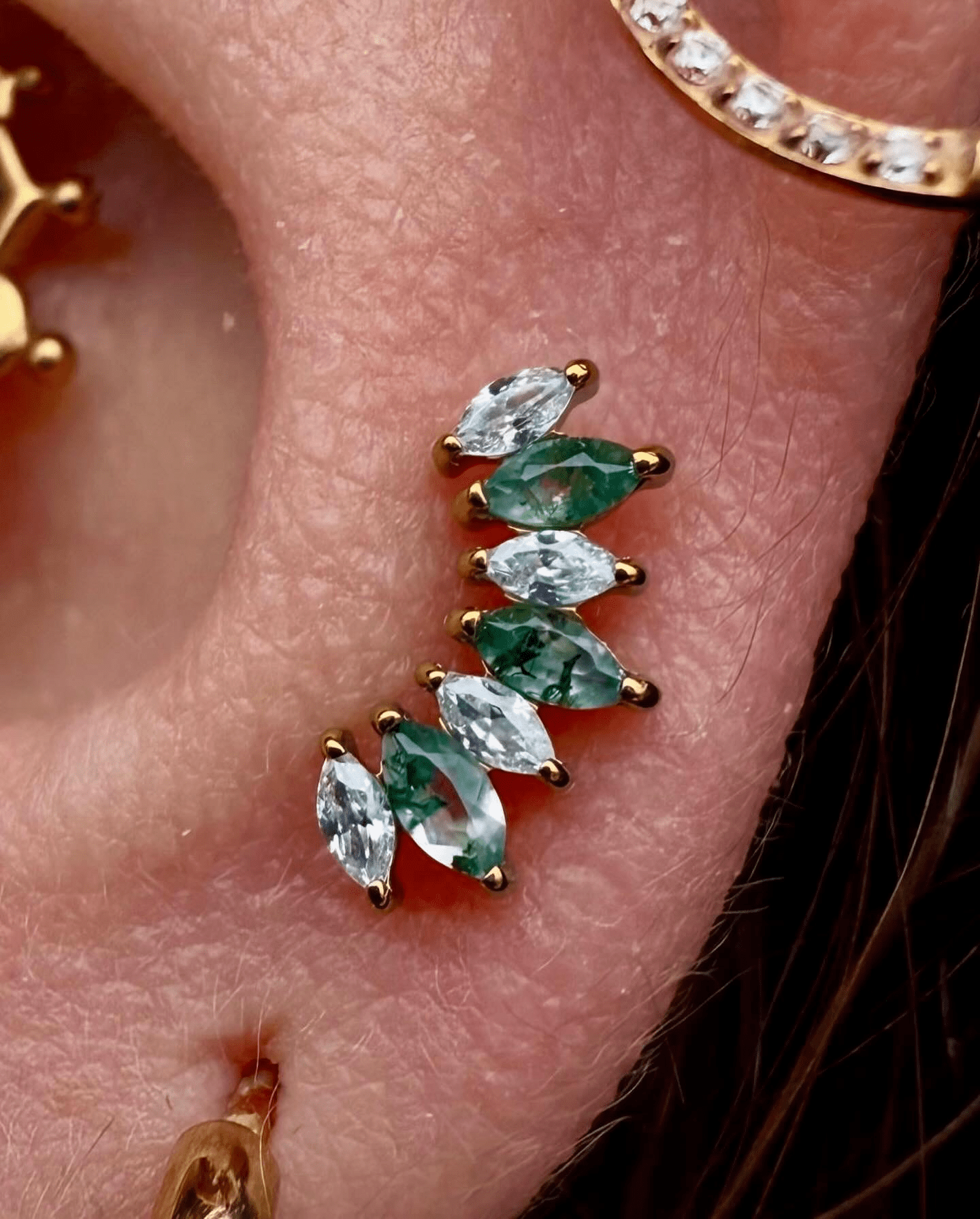 In addition to classic piercings, I also do surface piercings and microdermals. I work exclusively with high-quality jewelry made from certified implant-grade titanium or 14- to 18-karat gold. Each piece is carefully selected – not only for biocompatibility but also to ensure it fits your anatomy and looks as good as it feels. I’m looking forward to being part of your next piercing experience!