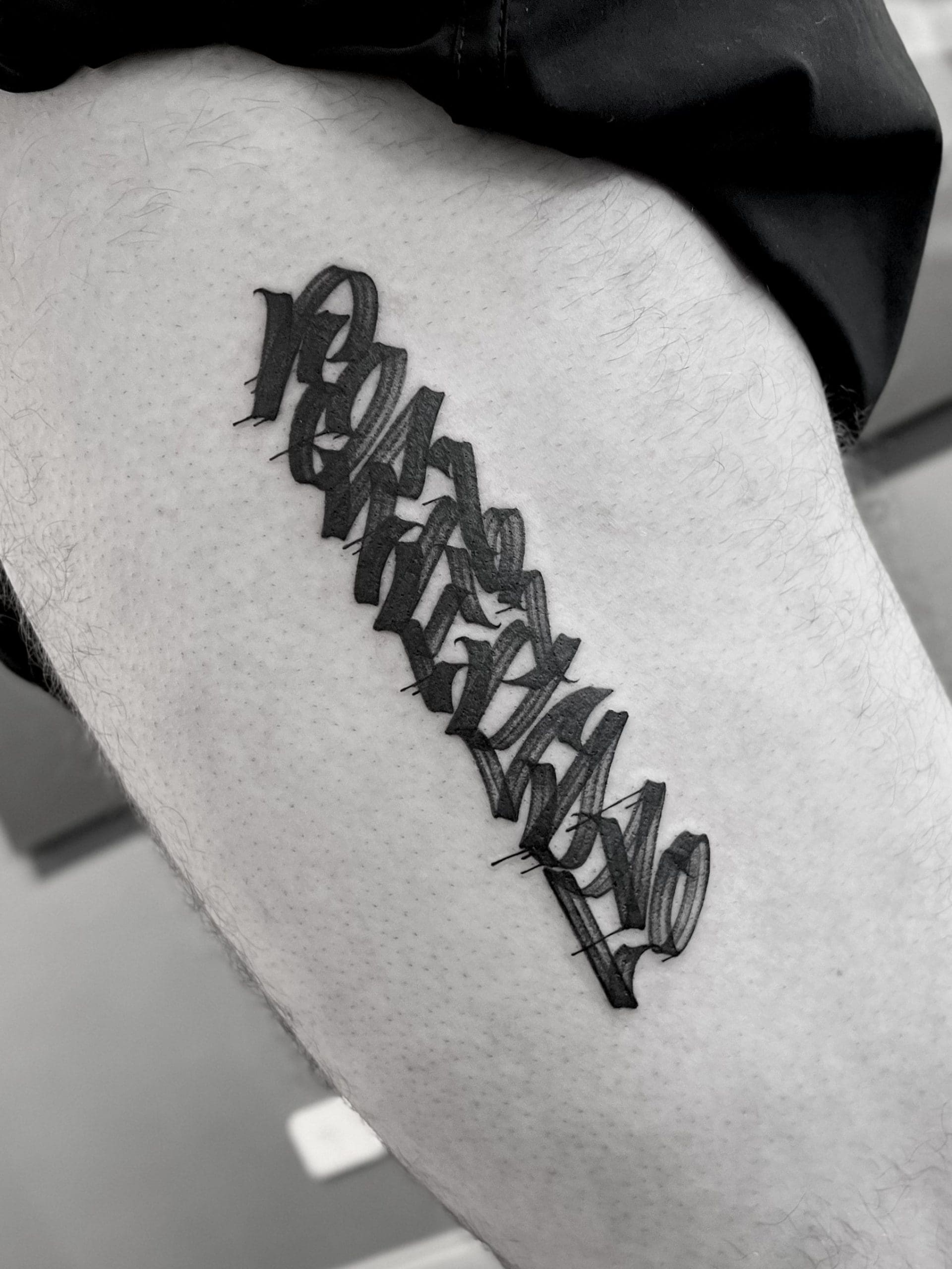 These tattoos often serve as deeply personal expressions, commemorating important moments, values, or loved ones. Whether you’re drawn to minimalistic lettering or elaborate designs, our talented artists are skilled in creating script tattoos that combine precision and creativity, ensuring each piece is as meaningful as it is visually captivating.